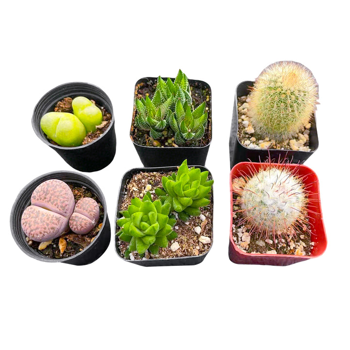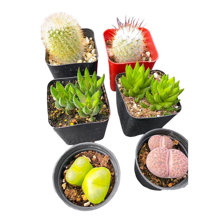 2 Cactus + 2 Haworthia + 2 Lithops Succulents (2", Random Varieties)