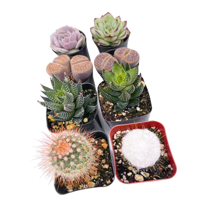 2 Cactus + 2 Haworthia + 2 Lithops + 2 Echeveria Succulents (2", Random Varieties)