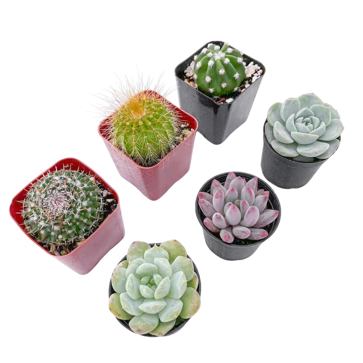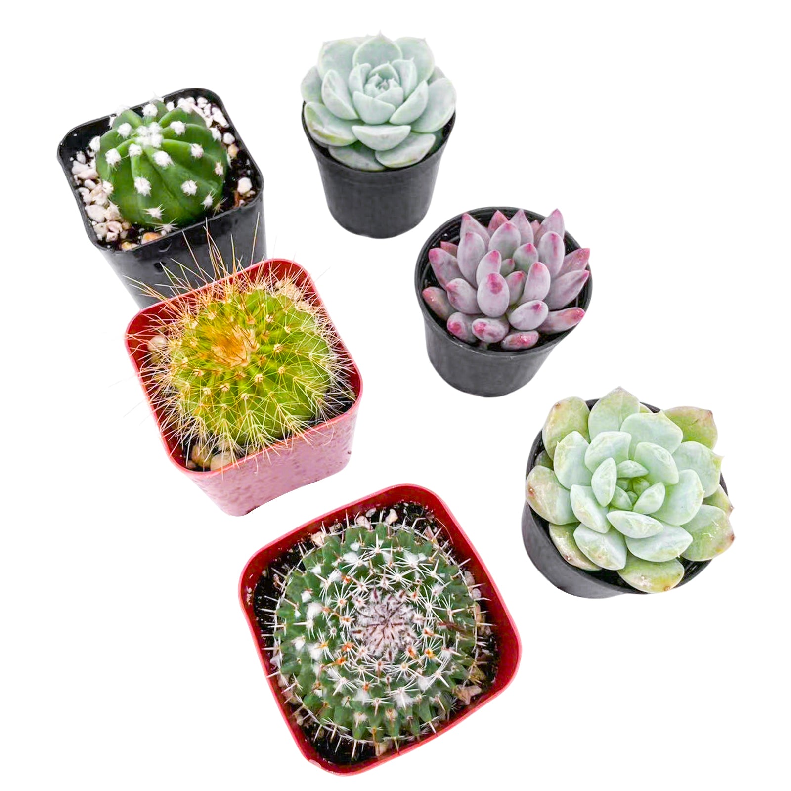 3 Cactus + 3 Echeveria Succulents (2", Random Varieties)
