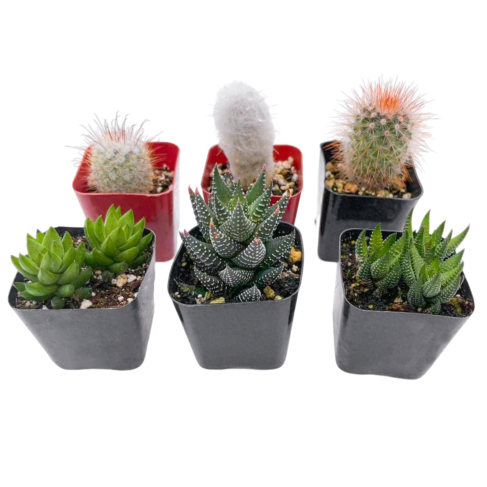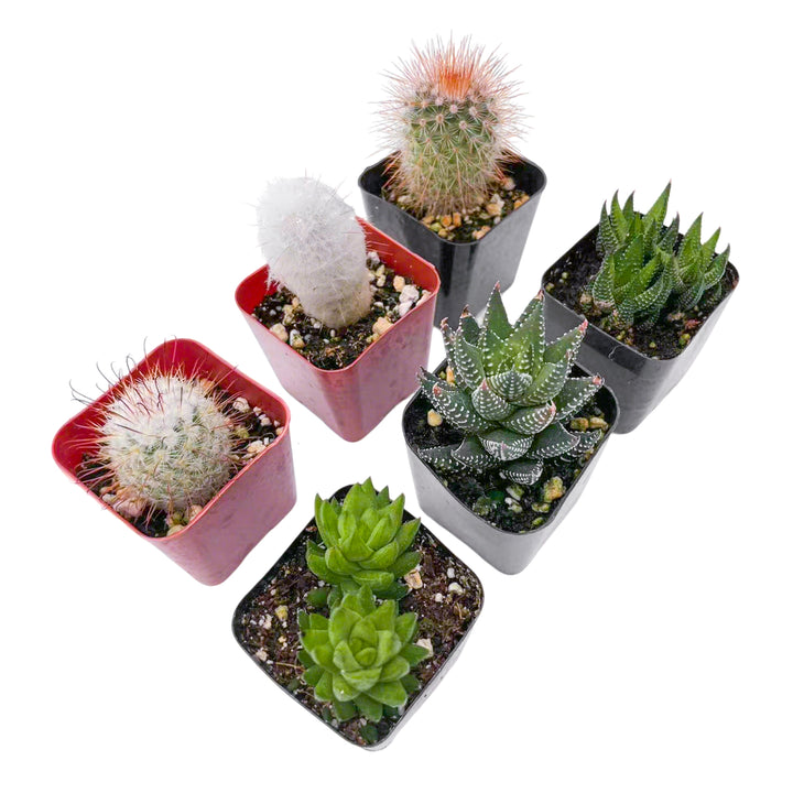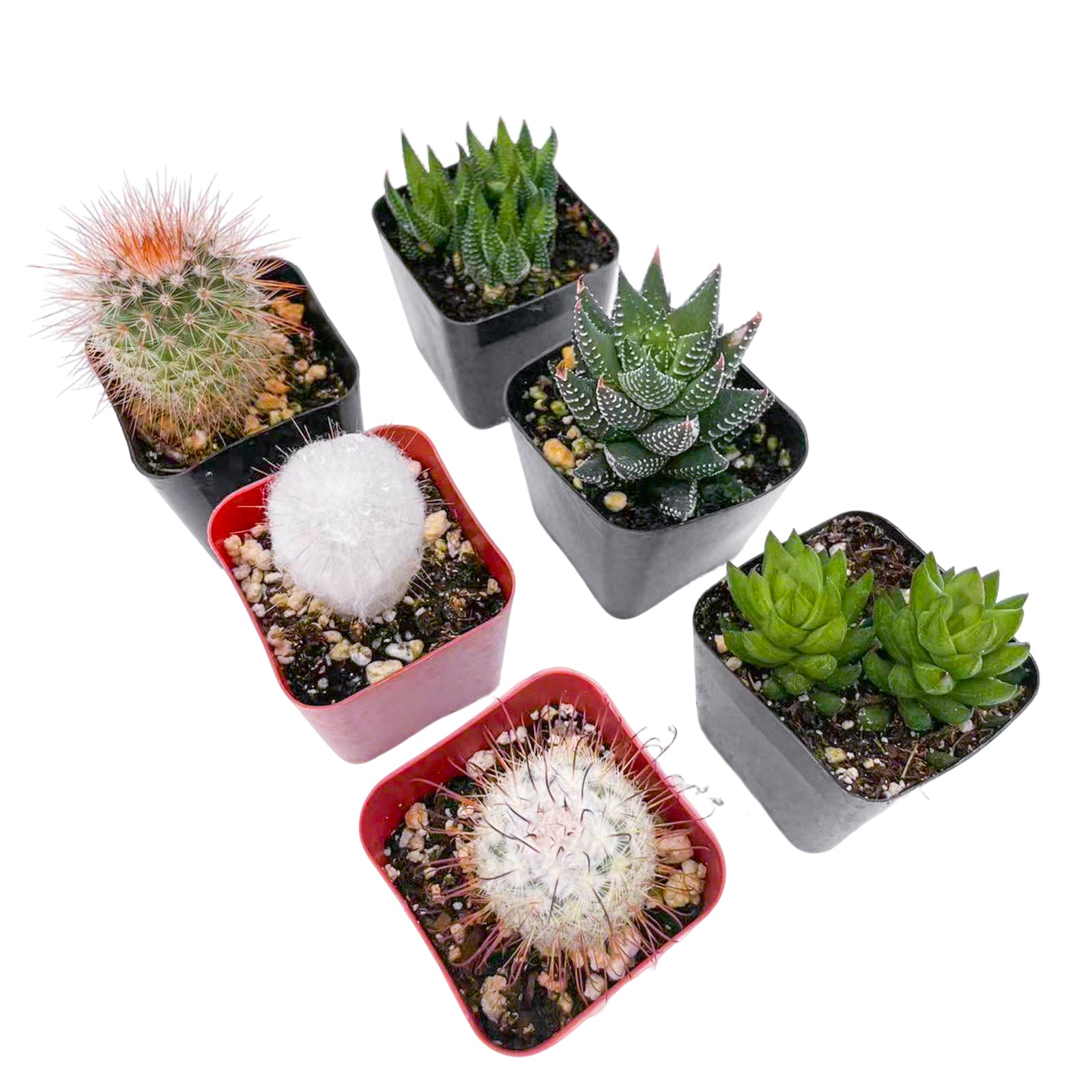 3 Cactus + 3 Haworthia Succulents (2", Random Varieties)