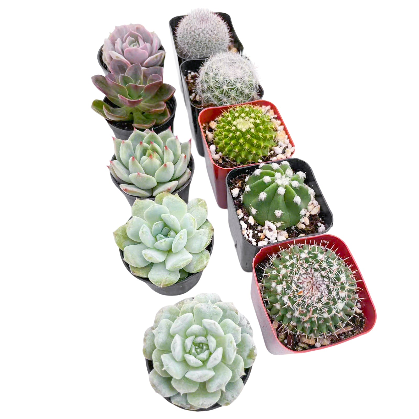 5 Cactus + 5 Echeveria Succulents (2", Random Varieties)