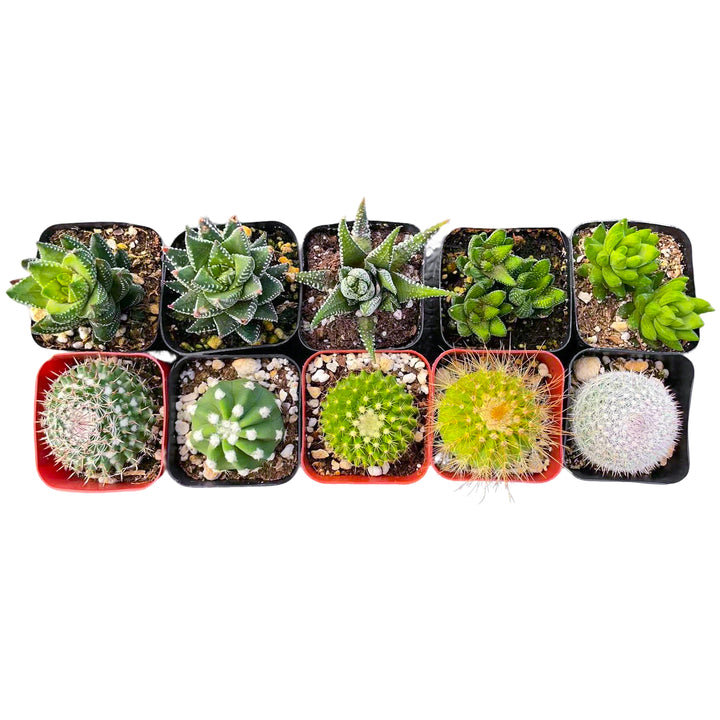 5 Cactus + 5 Haworthia Succulents (2", Random Varieties)