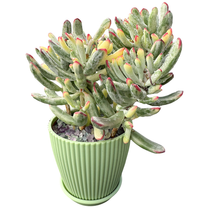 Sun/Location: Cotyledon Orbiculata cv.long Leaf Variegated prefers a sunny, warm, and dry environment. It can tolerate drought but not heat or cold. In summer, the plant should be protected from sun and rain, as heat and high humidity can cause leaf drop and root rot. Click here to learn how humidity affects succulents.