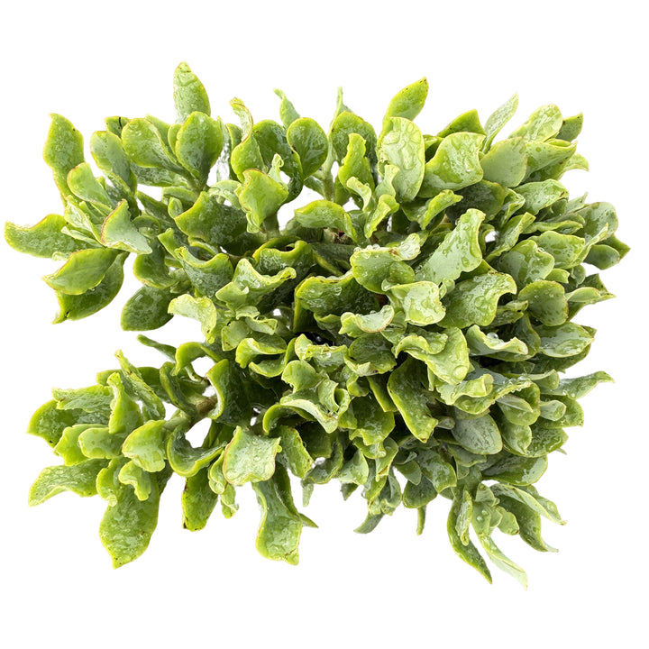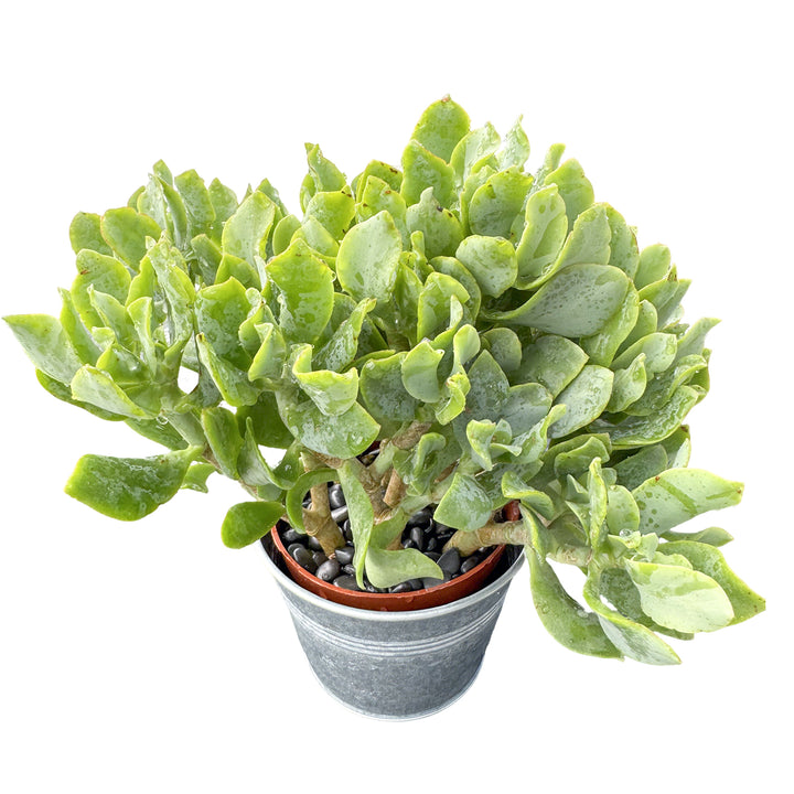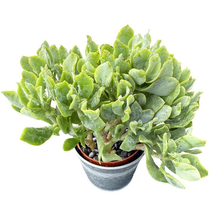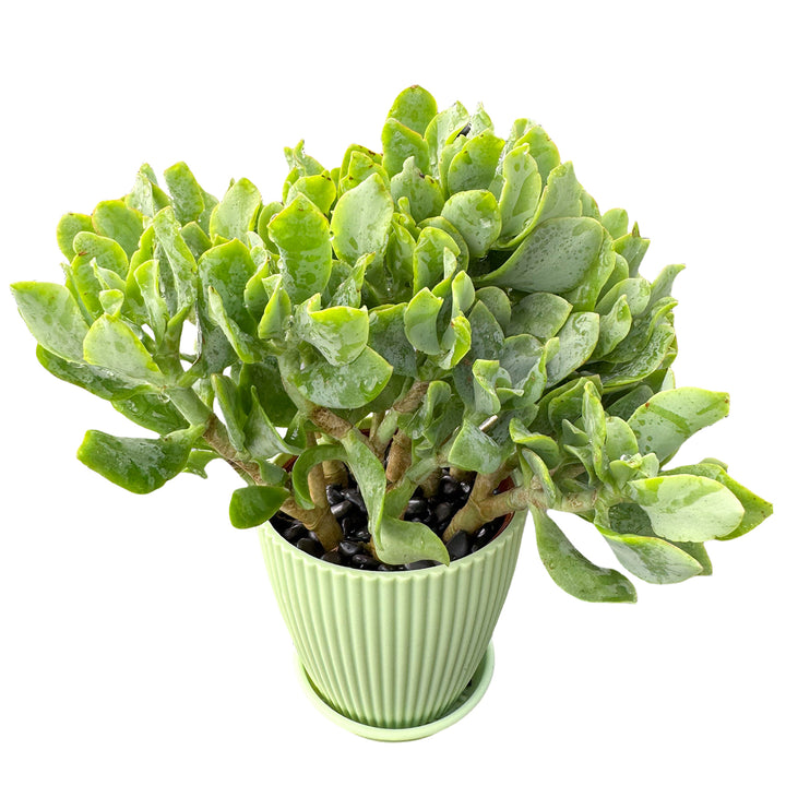 Crassula Arborescens Undulatifolia is a variant of the jade plant. Its thick, round leaves are wavy, giving this succulent a unique and intriguing appearance. The leaves are vibrant green with red edges, adding to its lively demeanor. Like other Crassula species, the stems of Crassula Arborescens Undulatifolia will gradually elongate and become woody over time.