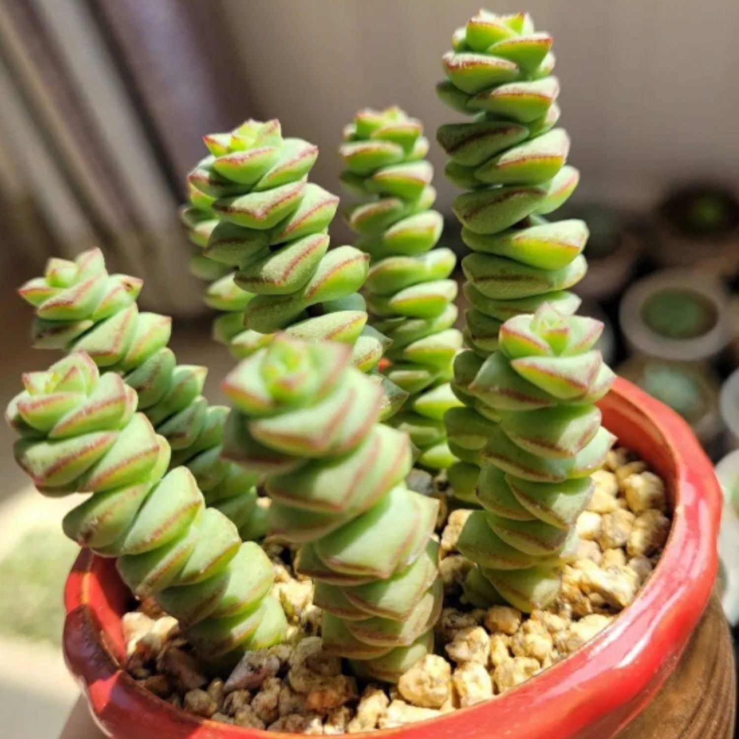 Sun/Location: Crassula 'Baby's Necklace' is a soft succulent that will not survive a hard frost; it should be brought indoors when the temperature drops. A bright southern-facing window where it could receive enough indirect sunlight would be a nice for it. Click here to learn how much sunlight succulents need.