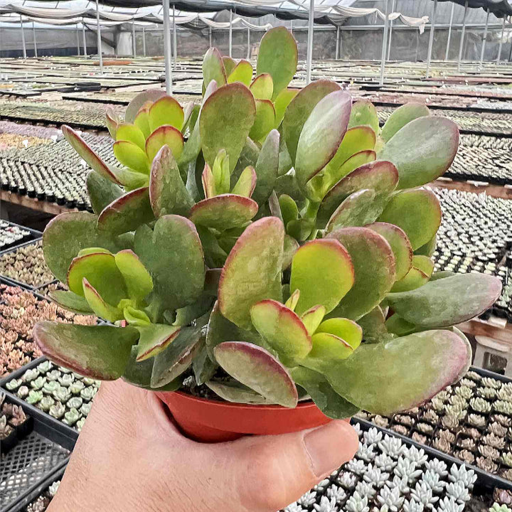 Sun/Temperature: The Crassula Ovata Crosby’s Compact thrives in well-lit areas but can tolerate lower light conditions. Compared to other succulent plants, Crassula Ovata Crosby's Compact requires more sunlight to maintain its compact form. It can be kept outdoors during warm seasons. If the temperature exceeds 95 °F in summer, providing some shade cloth is advisable. Jade plants are not cold-tolerant, and their leaves and stems can become soft and melt in low temperatures. During winter, when the temperature drops below 45 °F, it is recommended to move the plant indoors to prevent frost damage. Click here to learn how to take care of succulents in summer.