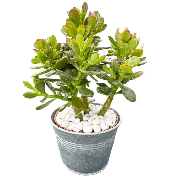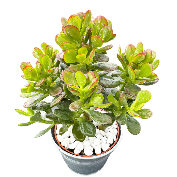 Crassula Ovata Crosby’s Compact / Dwarf Jade Plant, also known as Dwarf Jade Plant or Dwarf Money Tree, is a succulent that captivates with its unique features and rich symbolism. Its thick, round leaves resemble small coins, and having the succulent plant in your home or office is believed to attract financial abundance and wealth. Under optimal conditions, the leaf edges may develop reddish or bronze hues, adding further visual allure. The jade plant displays a compact growth habit, making it a perfect bonsai for indoor spaces, effortlessly enhancing windowsills, desks, or shelves.