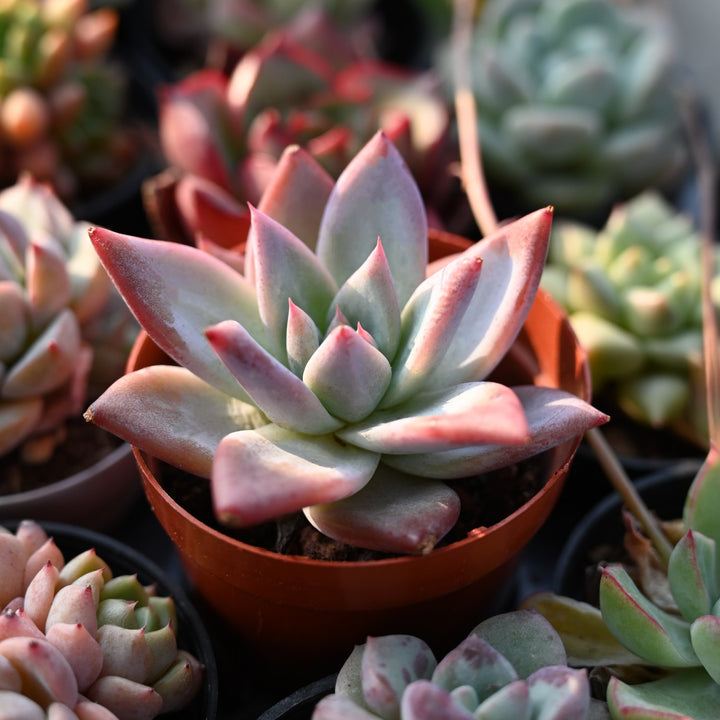 Sun/Location: The maintenance for E. Colorata var. Brandtii can be referred to as E. Colorata for similar growth habits. E. Colorata var. Brandtii feels happy to thrive in the partial shade sunlight for at least 4-6 hours daily in the growing seasons in spring and autumn to develop compact rosette and pinkish leaves. This cutie is prone to be over-leggy and slender without sufficient sunshine. The ideal temperature range for this succulent plant is between 65°F and 80°F, requiring a shade net in scorching summers to avoid being sunburnt and to wrap E. Colorata var. Brandtii in gardening fleece to protect their leaves from frost in winter.