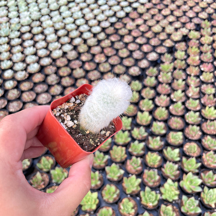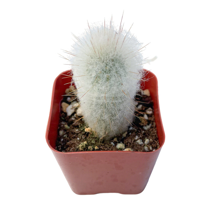 Espostoopsis Dybowskii, a striking columnar cactus native to the southeastern regions of Brazil, stands out for its elegant upright growth and distinctive woolly texture. Classified within the Cactaceae family, this slow-growing succulent features a single, unbranched (or sparsely branched at maturity) green stem adorned with dense, soft white to silvery wool that covers its areoles—small, cushion-like structures from which fine, brownish-yellow spines emerge. Over time, mature specimens can reach heights of 3–6 feet (0.9–1.8 meters) in optimal conditions, developing a sleek, architectural silhouette that adds vertical interest to any collection.