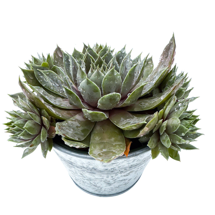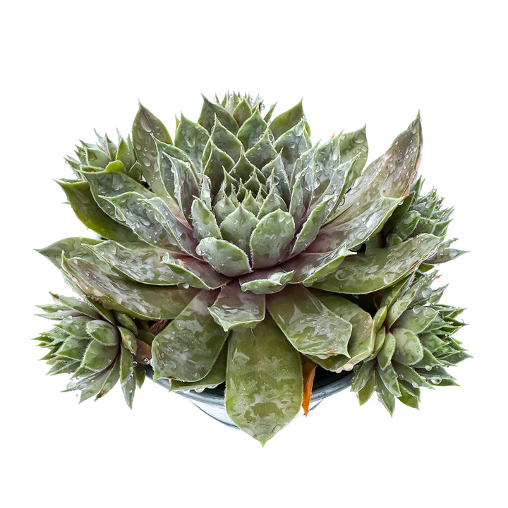 Sempervivum succulent plants will slowly change color under the right stress, turning pink and purple until they turn burgundy, which is very beautiful. The succulent will produce new offsets that also be called chicks.